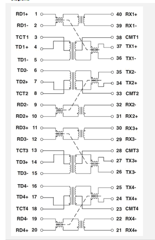 The H1259NL is a 10/100 base-t transformer module with poe option and 1:1 turns ratios.