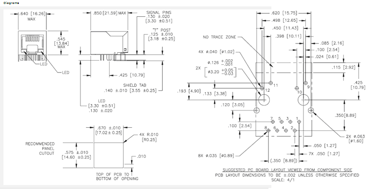 ![]() Ethernet & Telecom Connectors 1X1 TAB DOWN W/LEDS |
